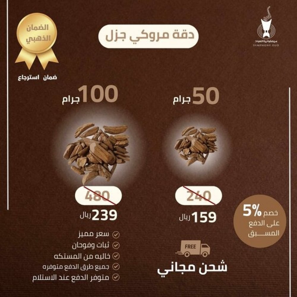 دقة مروكي جزل يعتبر من أفضل أنواع العود الطبيعي المحسن وخالي من المستكة التي تضيف الى منزلك لمسة ساحرة من روائح الشرق العتيقة و التي تعرف بأنها مفضلة لدى الكثيرين من محبي الروائح الفخمة والأنيقة في المنزل أو المكتب و غيرها من الامكان التي تطلب وجود رائحة عطرة على الدوام، استمتع بعود ذو نكهة و مزيج مبهر يخطف العقول.